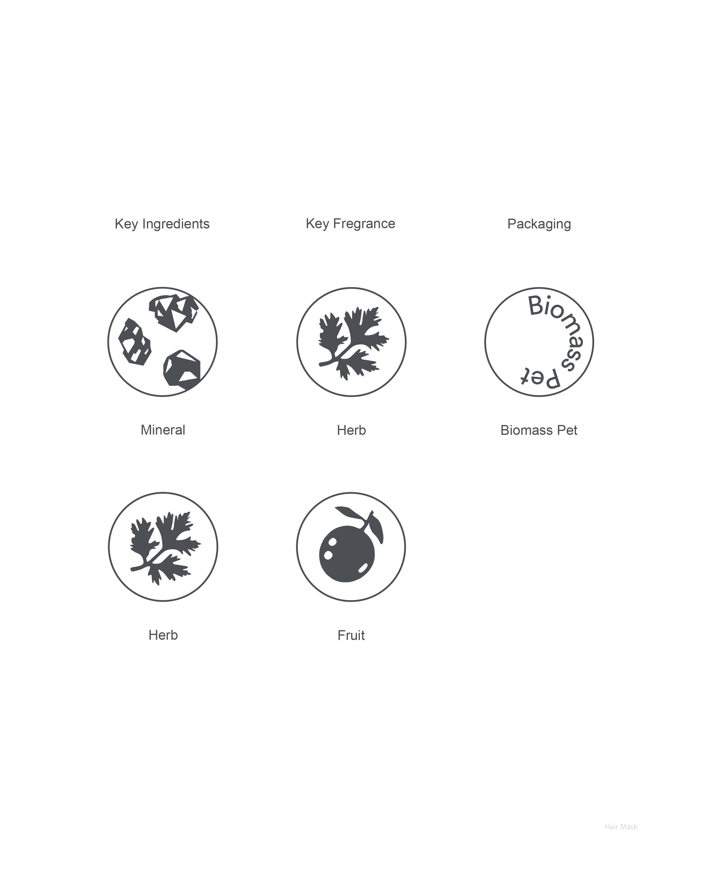 パッケージには、こだわりの自然由来の植物・ミネラル成分や精油の香り、容器の素材をまとめたオリジナルのアイコンマークを採用。ブランドの思想やアイデアをロゴとアイコンで表現したパッケージは、ミニマルでありながら創造性豊かで、自由で直感的なコミュニケーションが無限に広がります。