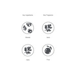 パッケージには、こだわりの自然由来の植物・ミネラル成分や精油の香り、容器の素材をまとめたオリジナルのアイコンマークを採用。ブランドの思想やアイデアをロゴとアイコンで表現したパッケージは、ミニマルでありながら創造性豊かで、自由で直感的なコミュニケーションが無限に広がります。