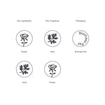 パッケージには、こだわりの自然由来の植物・ミネラル成分や精油の香り、容器の素材をまとめたオリジナルのアイコンマークを採用。ブランドの思想やアイデアをロゴとアイコンで表現したパッケージは、ミニマルでありながら創造性豊かで、自由で直感的なコミュニケーションが無限に広がります。