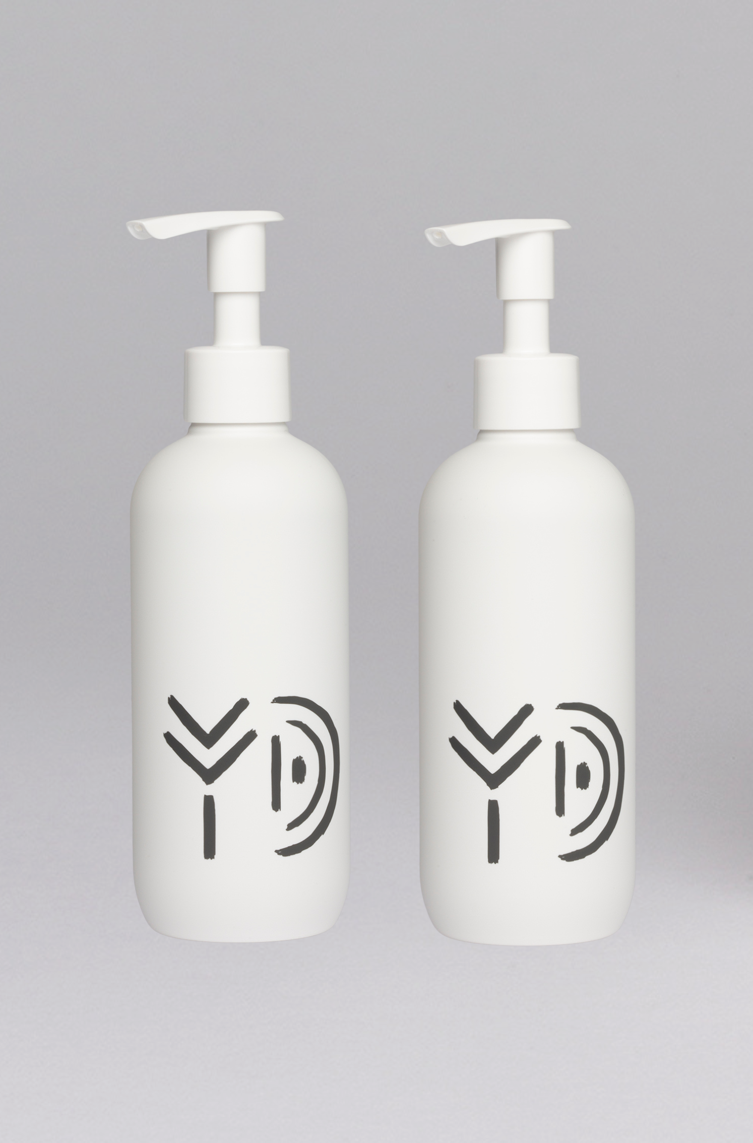 PVC再生素材(端材やロス素材となるPVCを含有)を採用したパッケージには、大地を思わせる柔らかなフォルム、象形文字のような有機的で創造的なラインが印象的な〈YD〉のロゴと、こだわりの自然由来の植物・ミネラル成分や精油の香り、素材をまとめたオリジナルのアイコンマークがほどこされています。ギフト用パッケージとして、メイクポーチやポータブルなトラベルポーチとしても使用できるリユーサブルなデザインです。